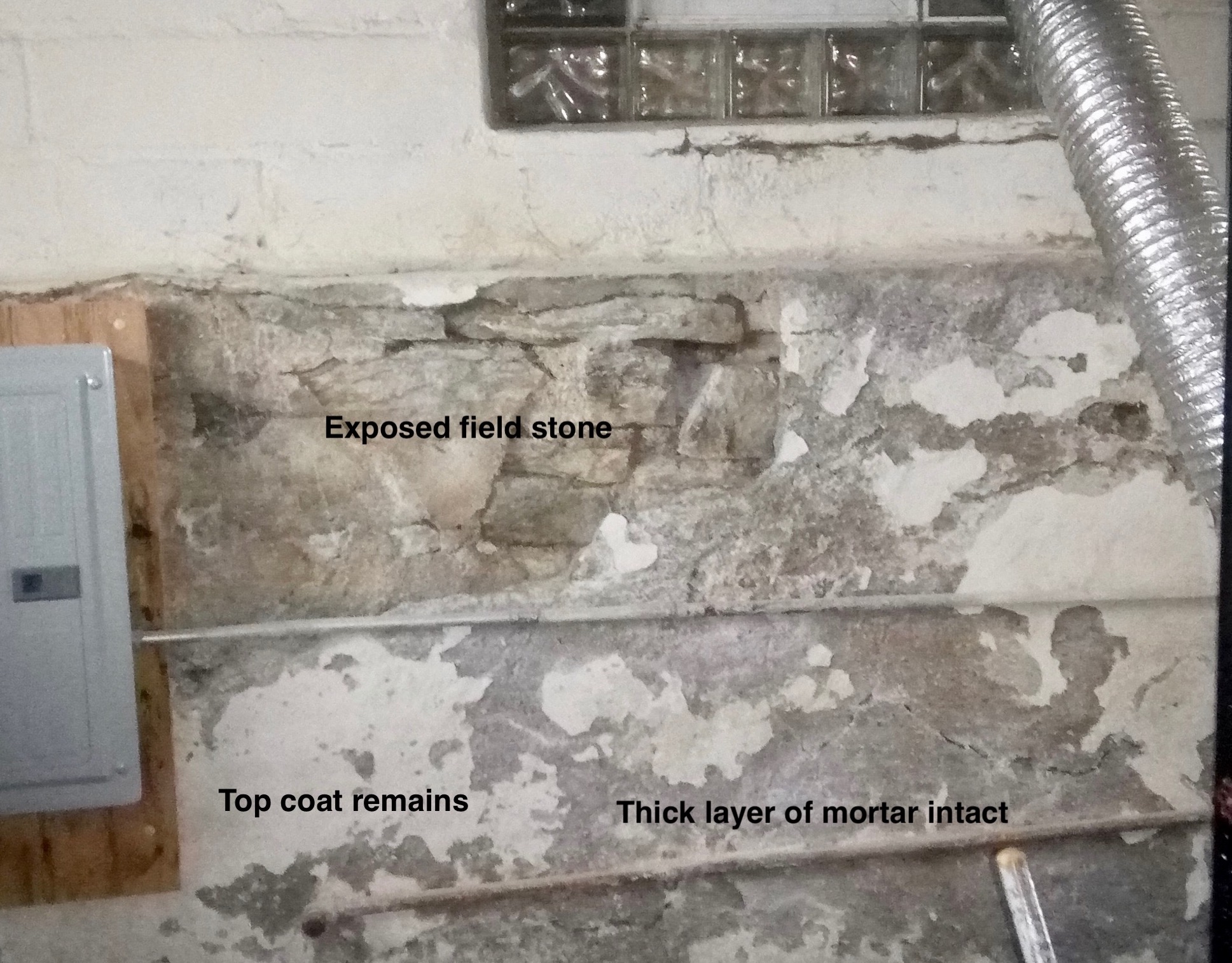 Nevertheless, these walls are in good condition for a basement this old. I have scraped this wall. After some minor crack repairs it can be cleaned and painted.